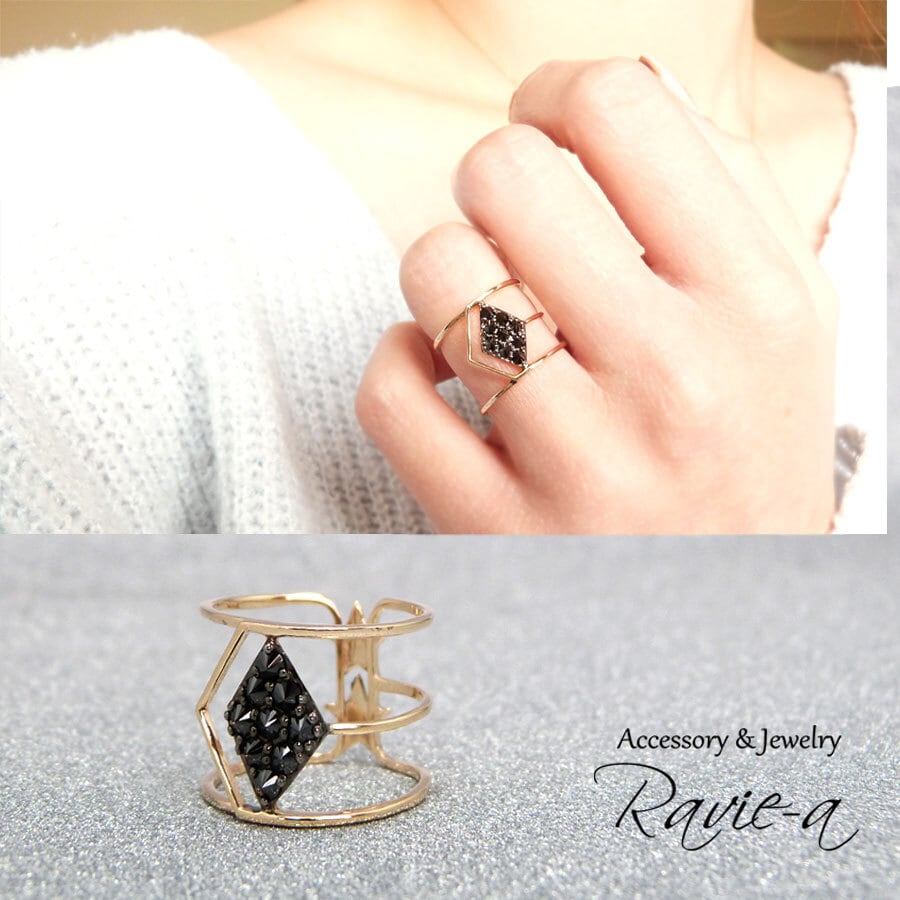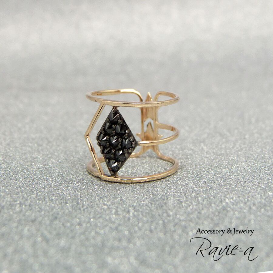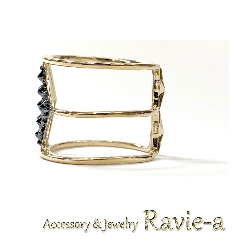 石を逆留めし、まるでスタッズのような印象を持った K10のリング。