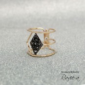 スタッズのようなブラックCZがカッコいい☆透かし太リング*スターデザイン*星モチーフ
