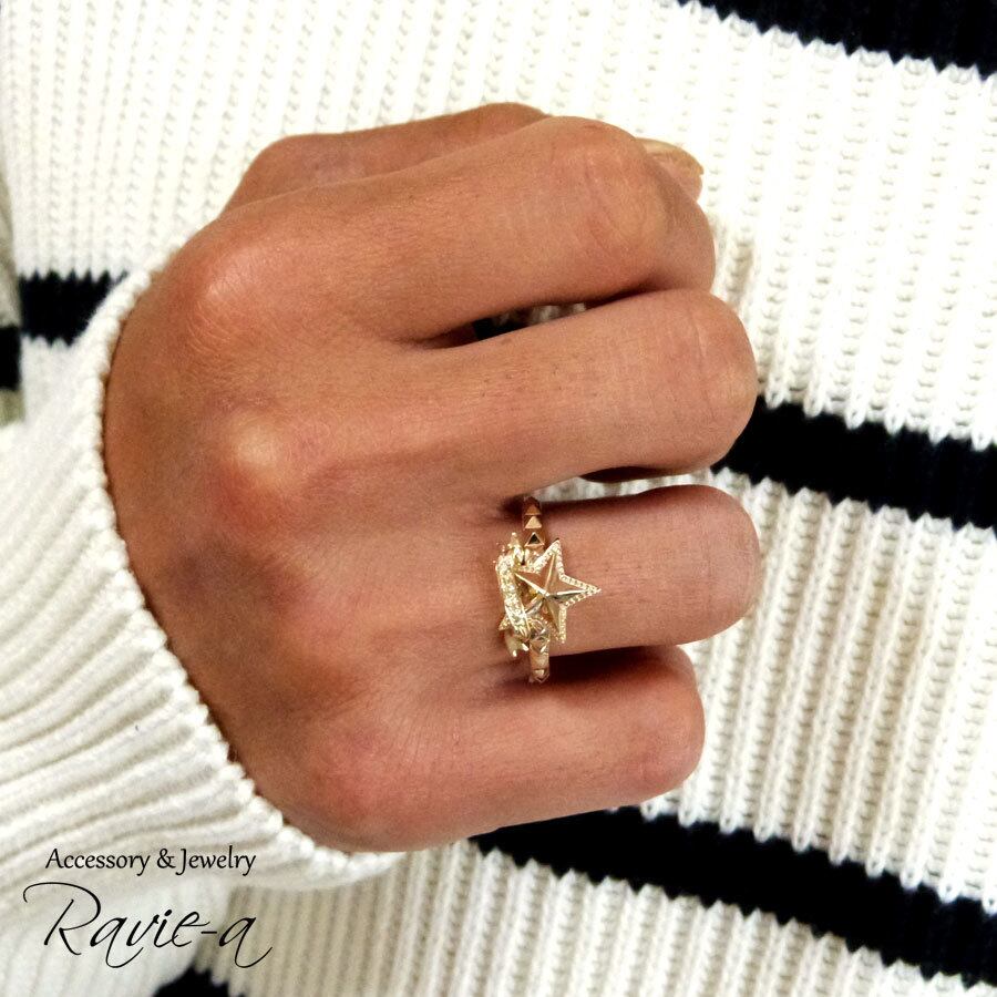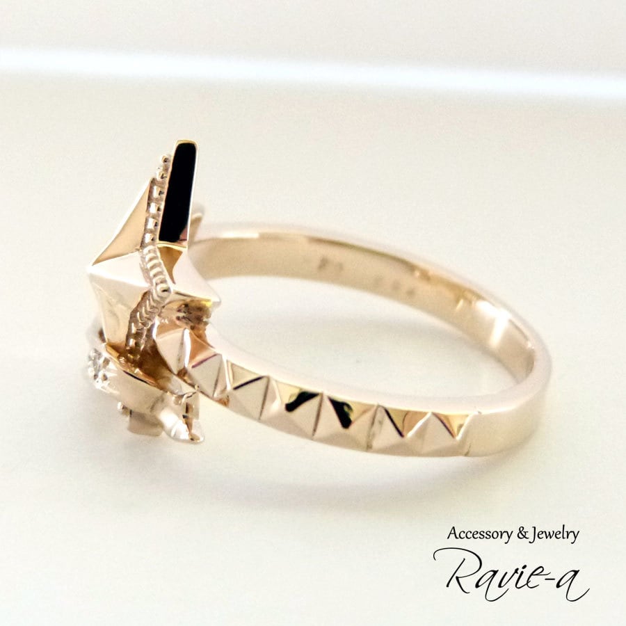 スター(星型)モチーフと腕スタッズのK10 リングです。