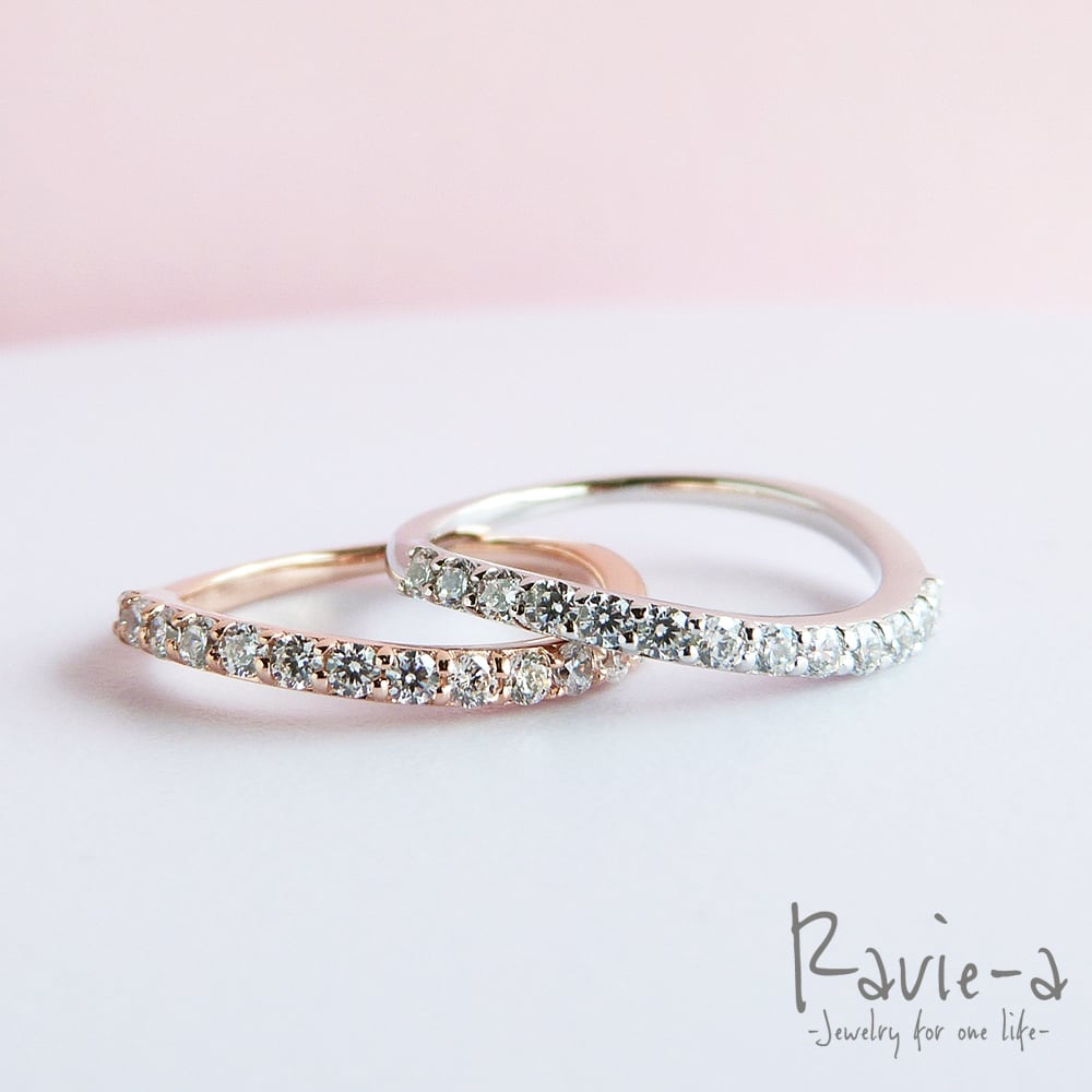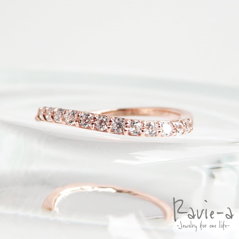 しなやかな流れるウェーブラインがなんとも美しいハーフエタニティーリングは指を美しく見せてくれる効果も。