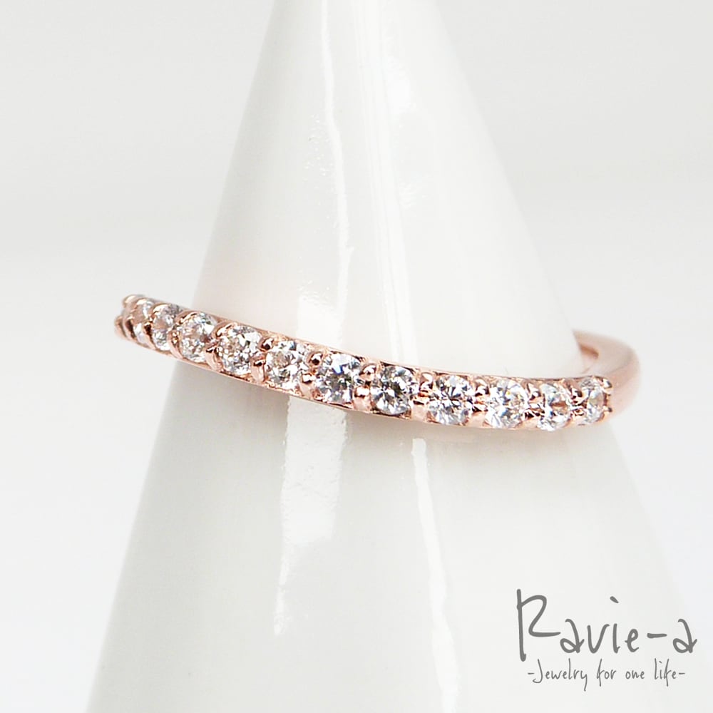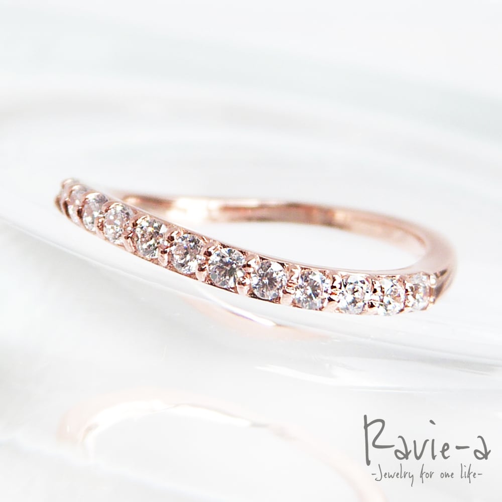 シルバー925 ハーフエタニティリング ウェーブデザイン ピンクゴールド 婚約指輪 結婚指輪