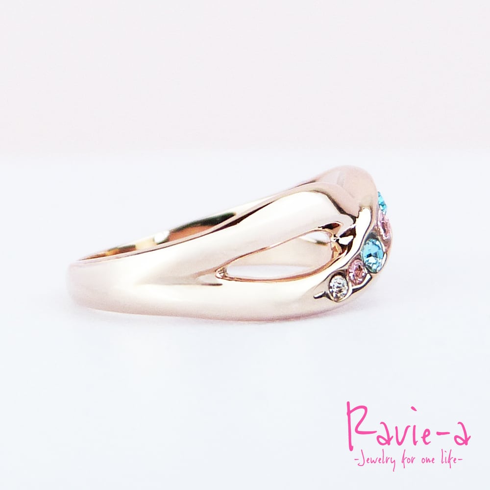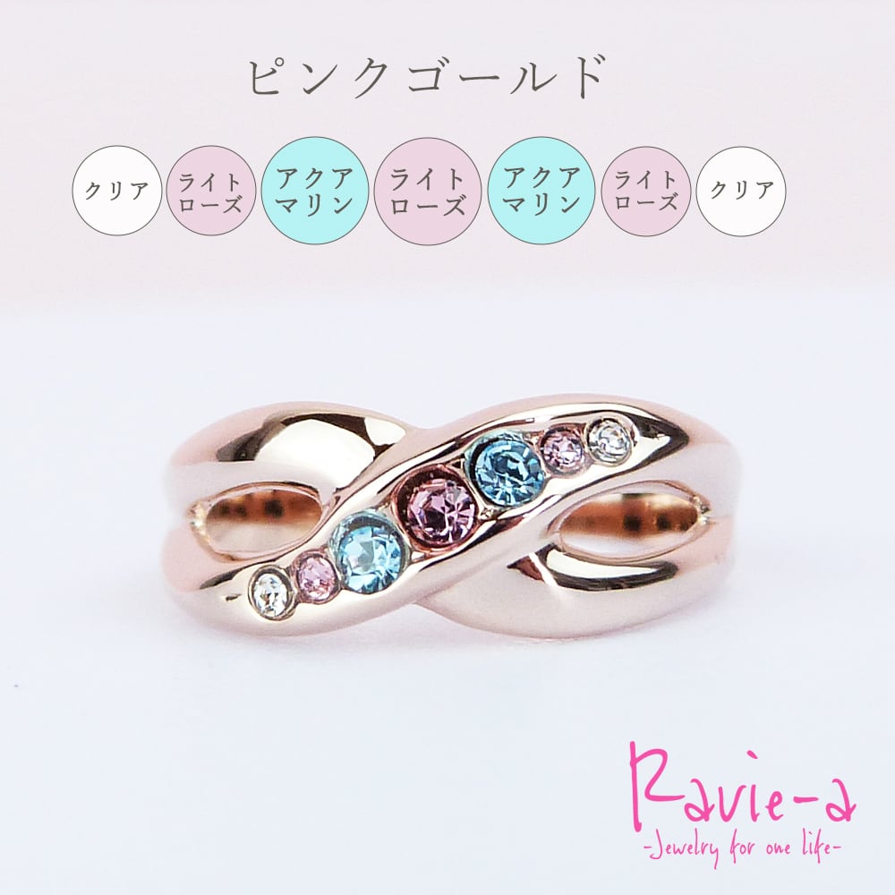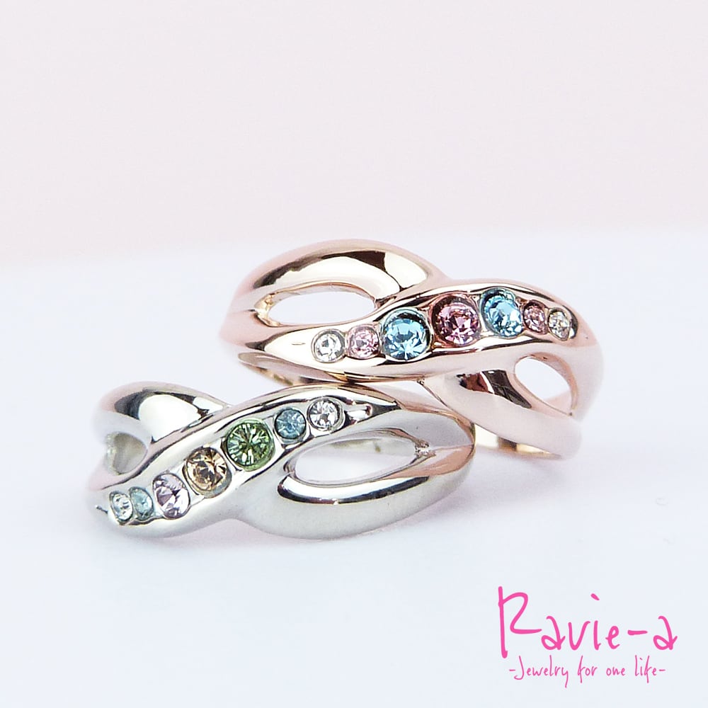 7石のクリスタルのカラーをカスタマイズできるぷっくりしたクロスリング。