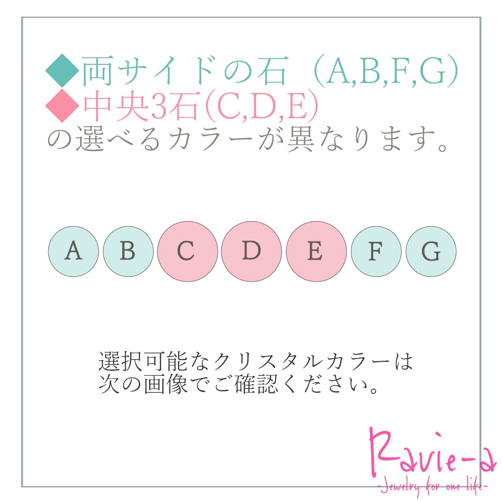 クリスタルは7石ご指定をいただけますが、両サイド2石と、中央3石の選べるクリスタルカラーが異なります。