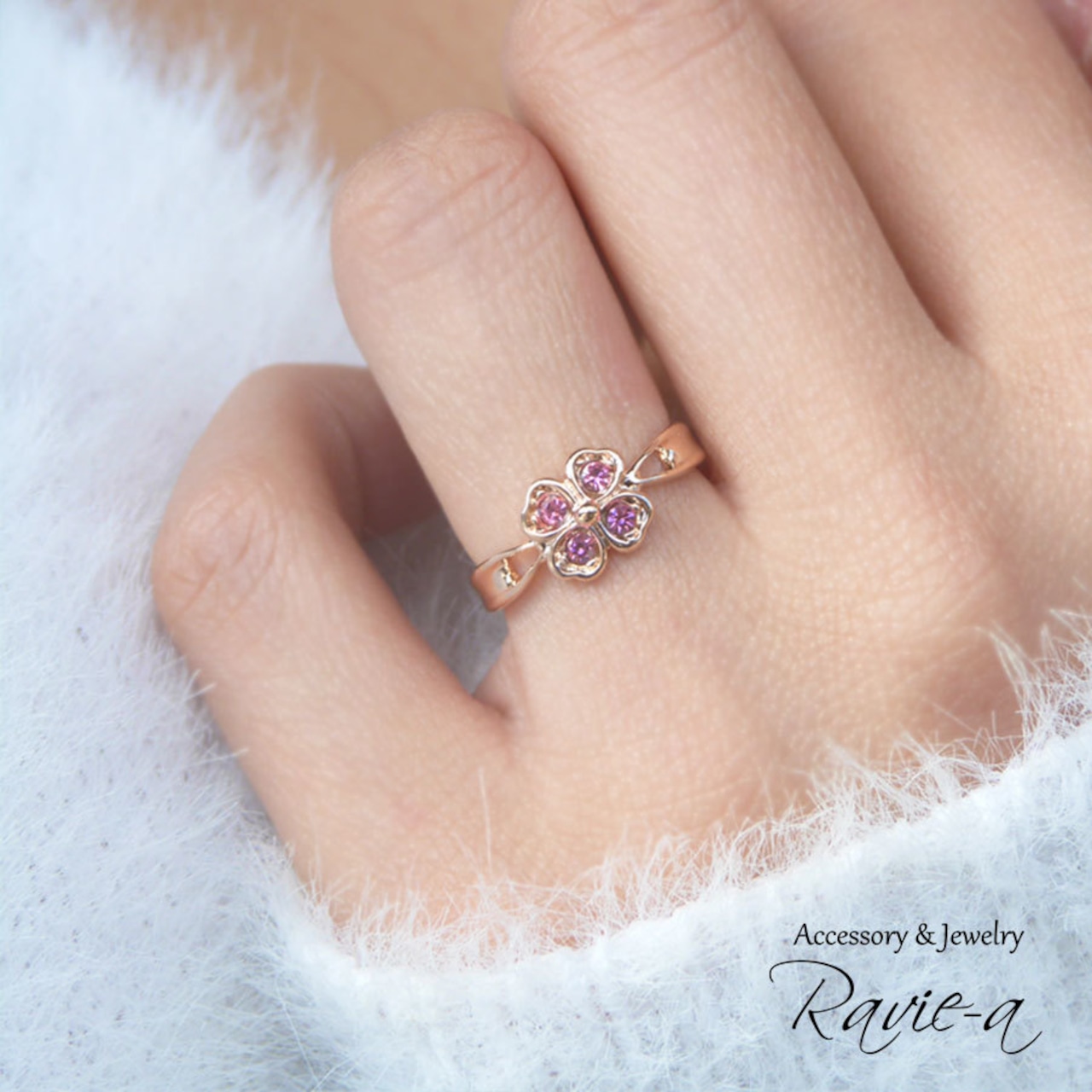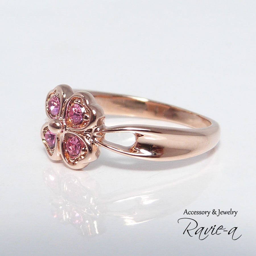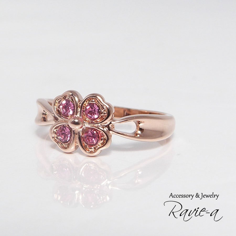 ピンクゴールド ピンキーリング クローバー クリスタル ピンク ローズ 四つ葉のクローバー 願い事 幸運のお守り 開運