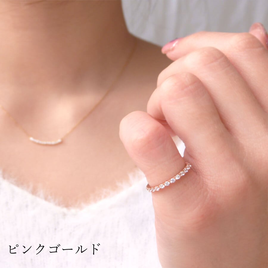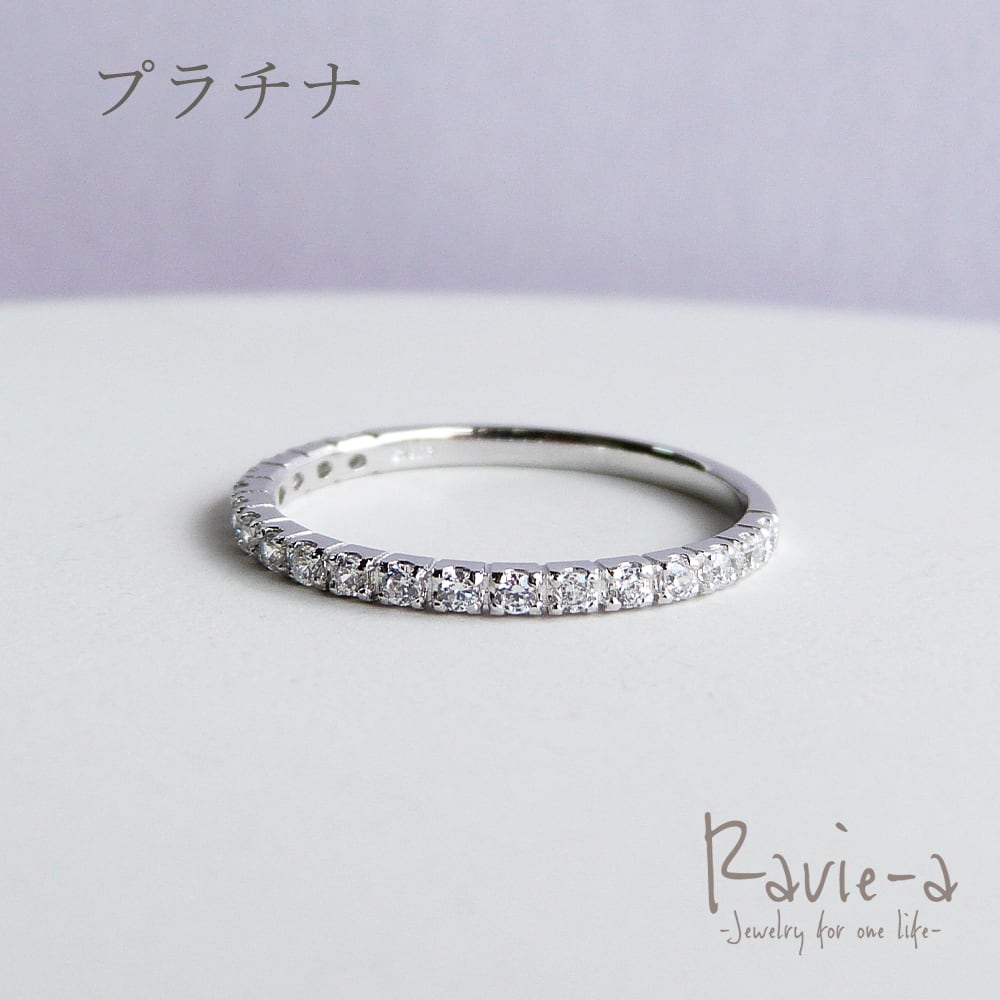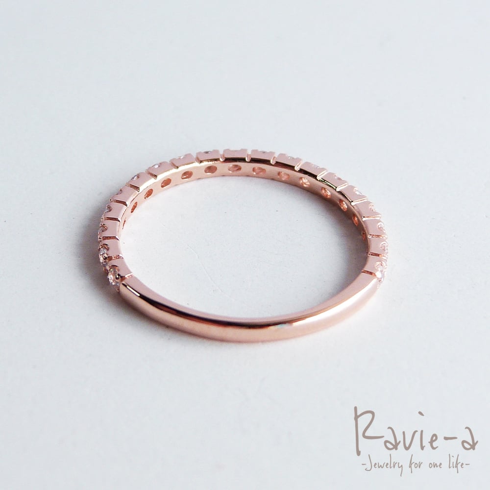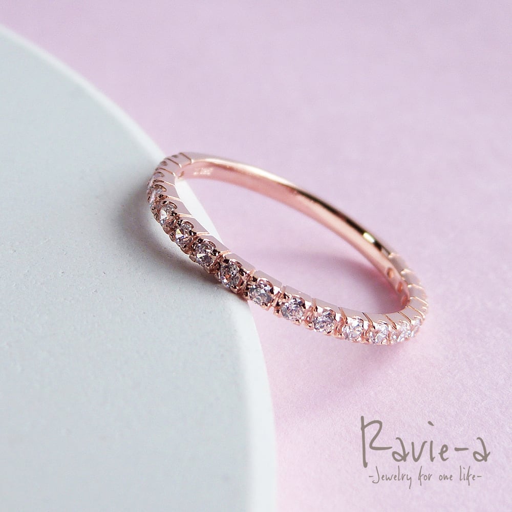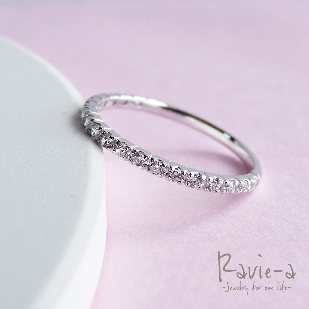 19石のキュービックジルコニアを使用しながらもシンプルでどんなシーンにもマッチする極細エタニティリングでございます。