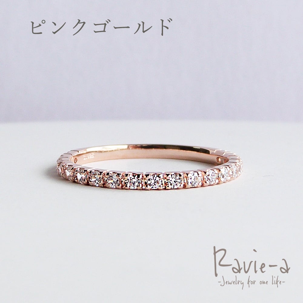 ピンキーリング エタニティリング 極細 シルバー925 プラチナ ピンクゴールド キュービックジルコニア 19石 シンプル 3号から6.5号