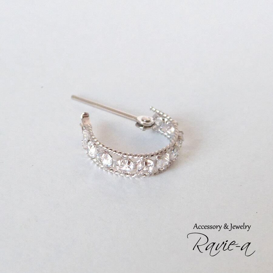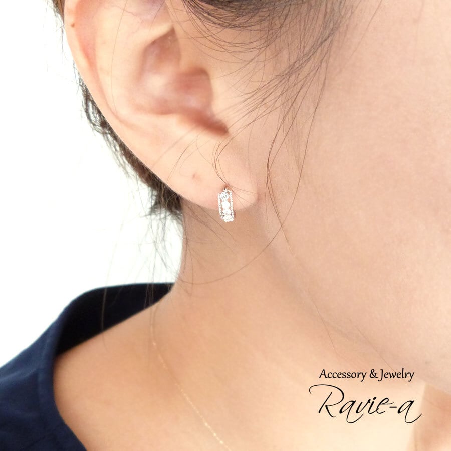 フープピアス k10 ホワイトゴールド キュービック 10石 大人 オフィス シンプル キラキラ