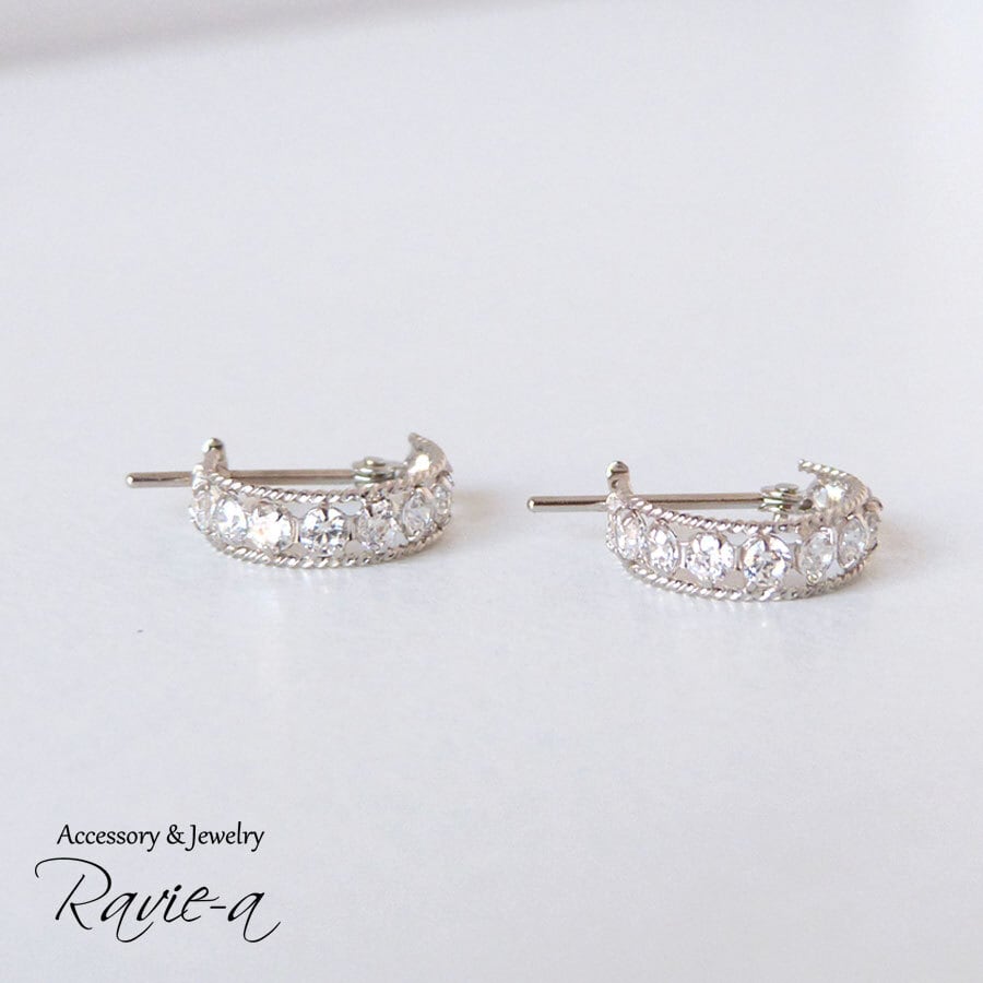 キュービックジルコニア10石を使用した大人な雰囲気のK10ホワイトゴールドフープピアスです。