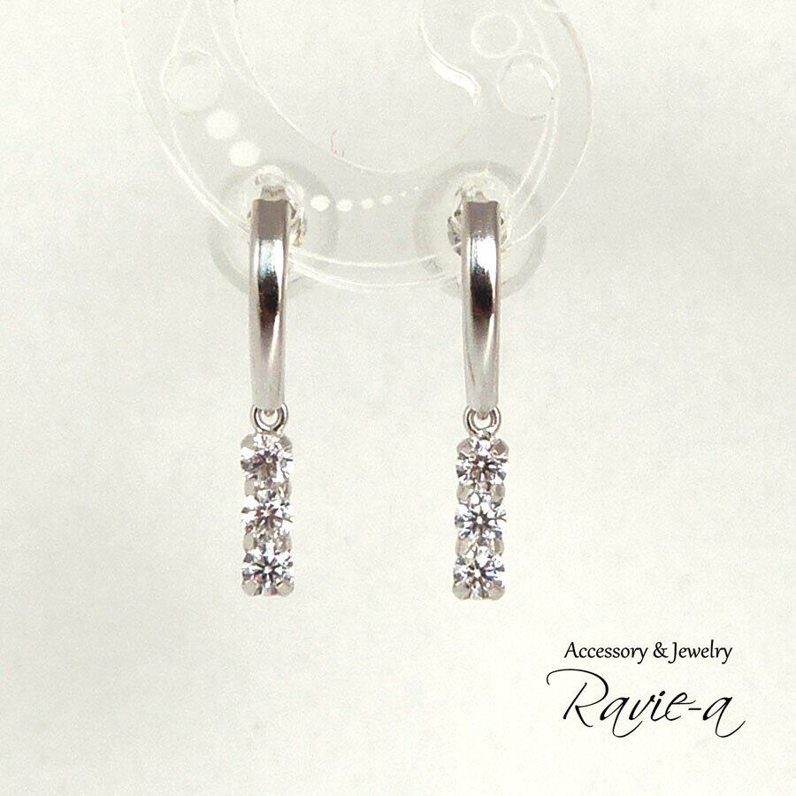 ピアス1本につき2mmのキュービックジルコニアを3石使いユラユラ揺れるデザインに仕上げております。