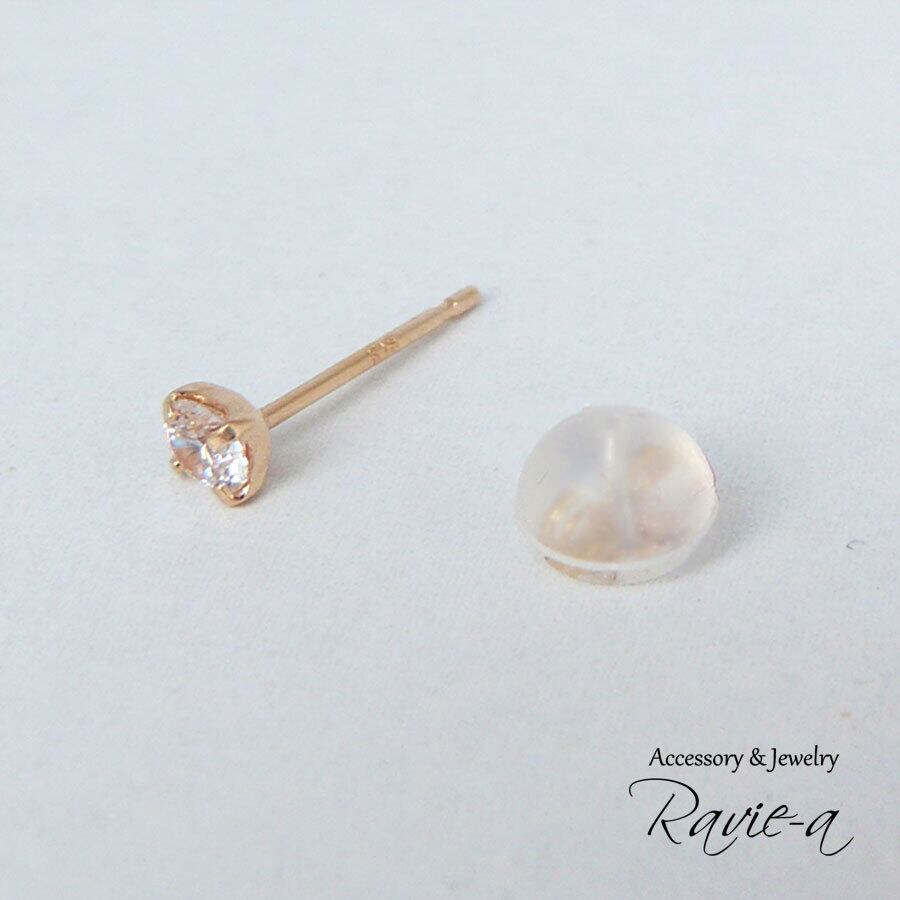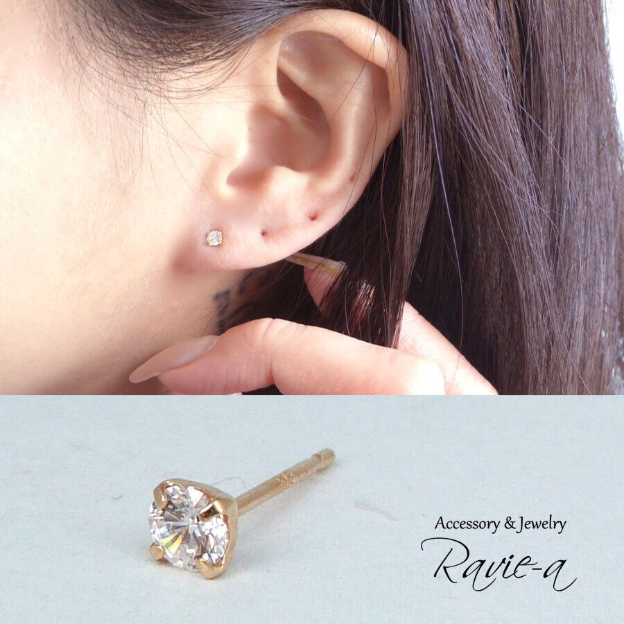 K18イエローゴールド 1粒ピアス キュービックジルコニア 片耳 シンプル 3mm