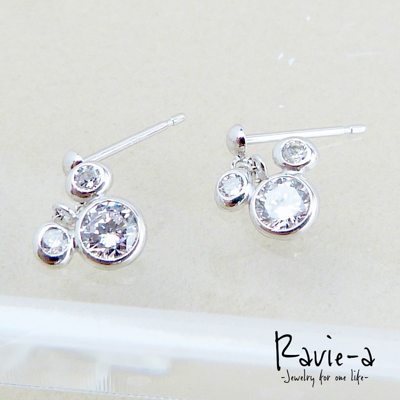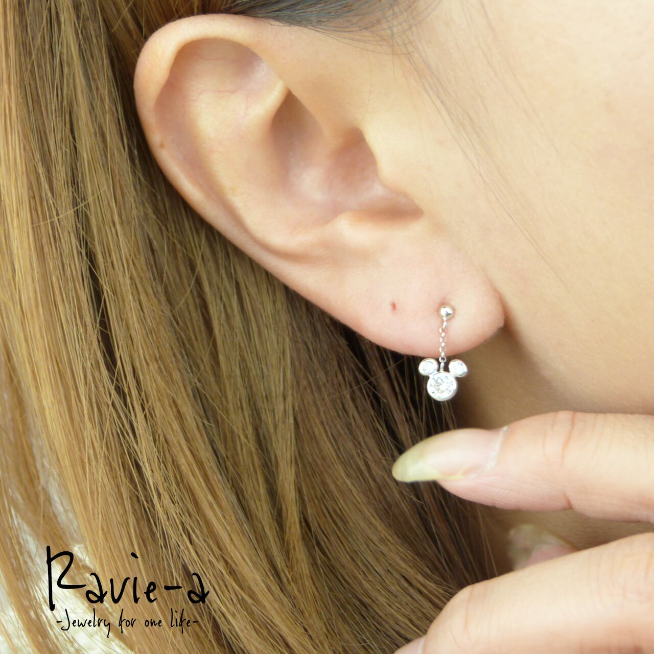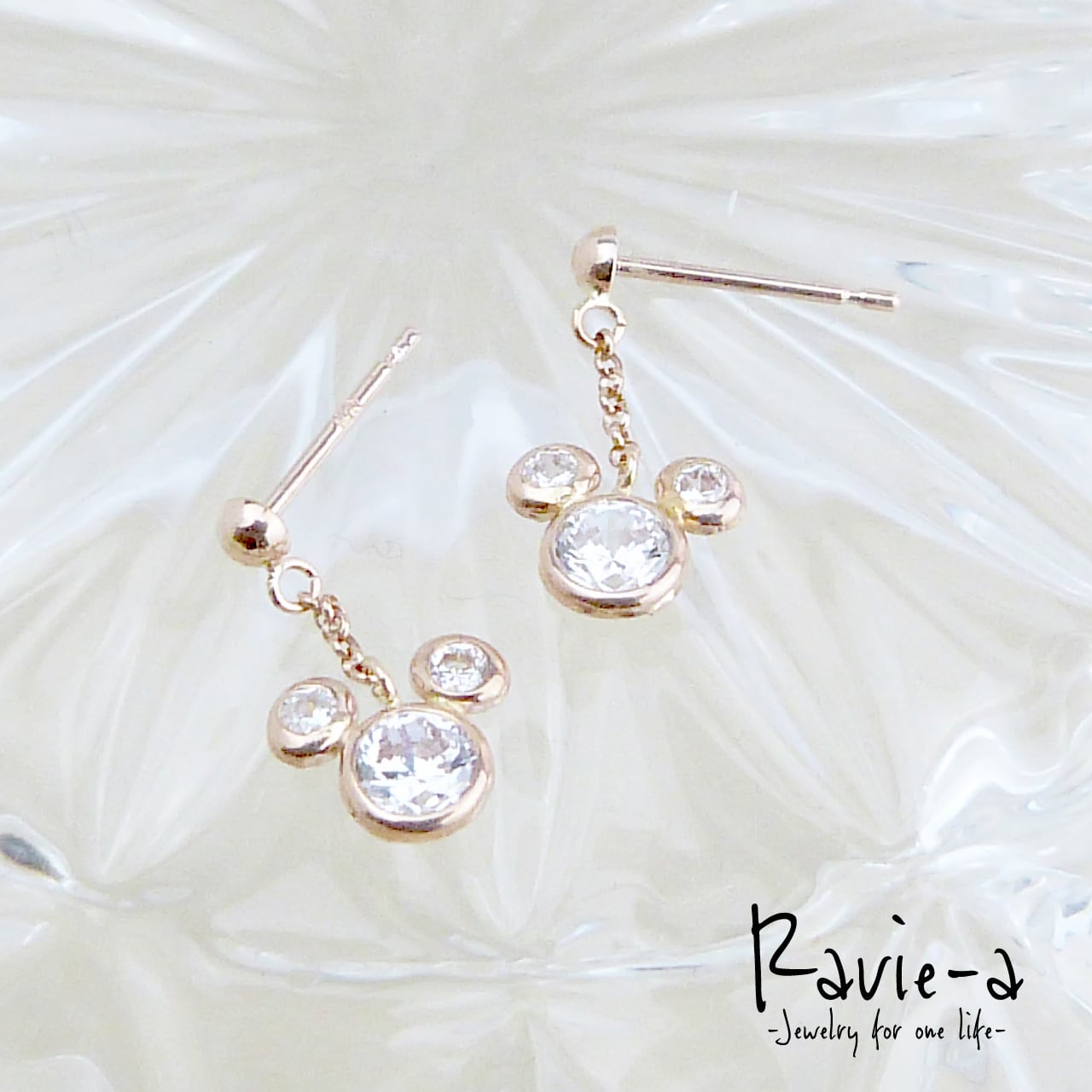 可愛いマウスデザインのキュービックジルコニアが揺れるピアスでございます。