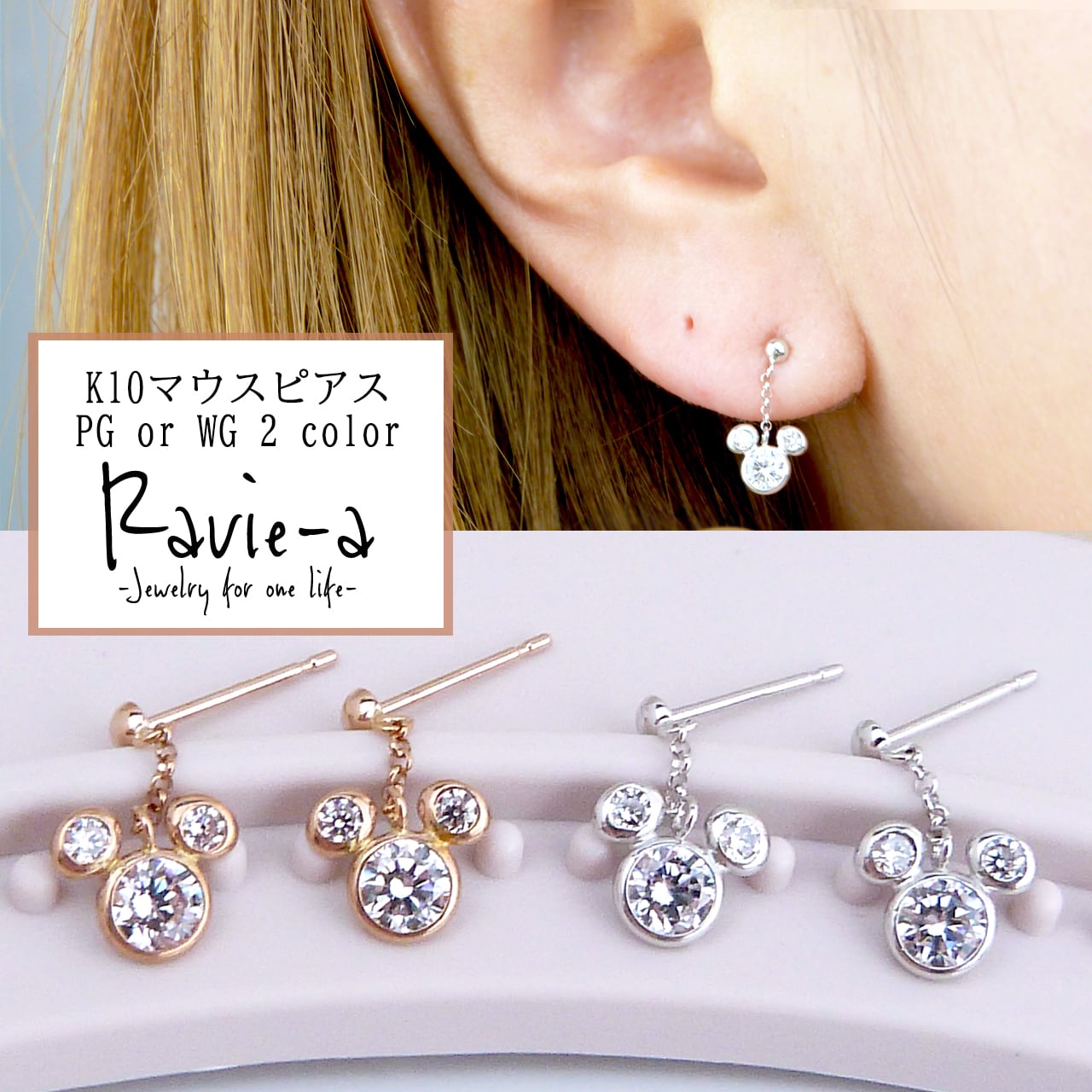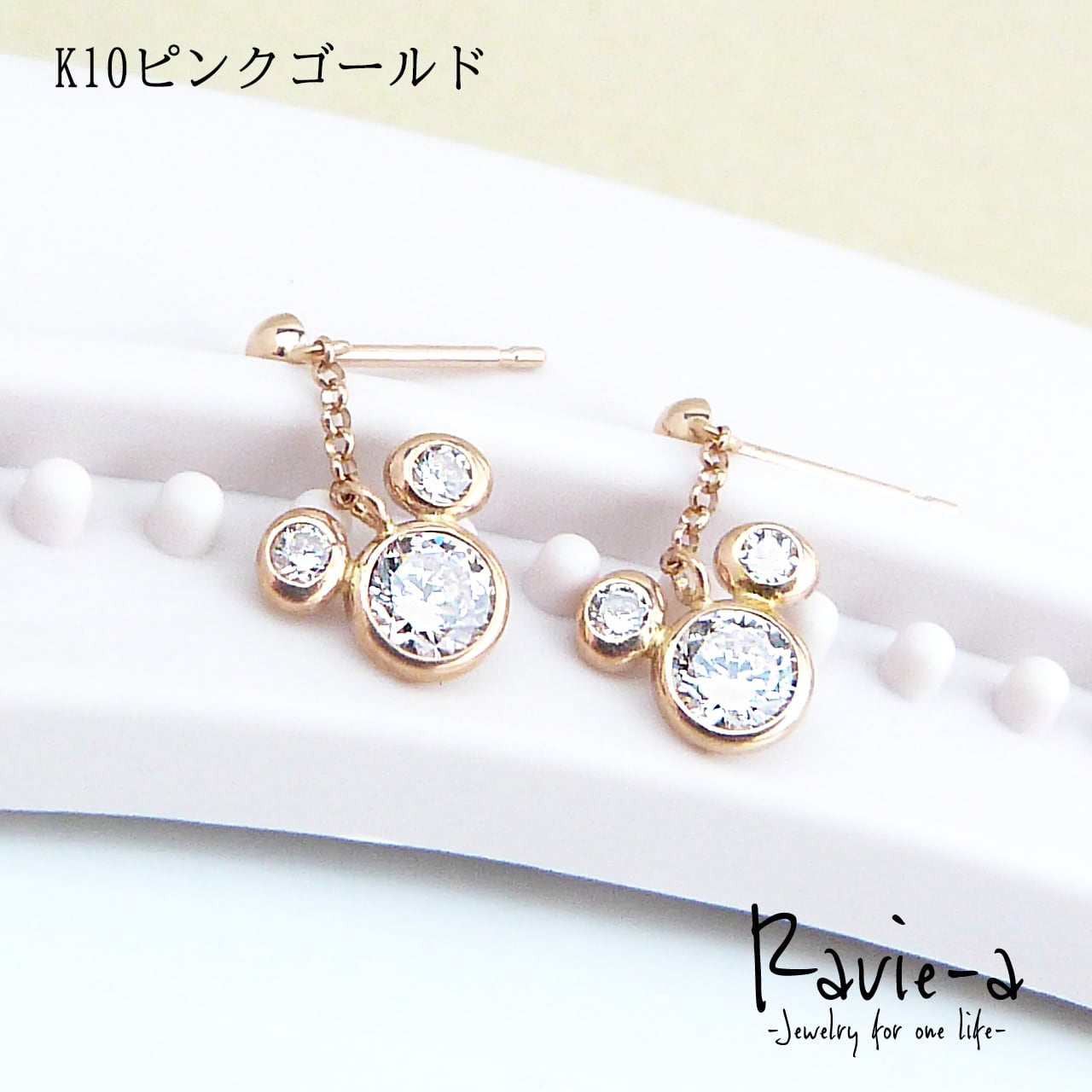 マウスデザインピアス K10 ピンクゴールド 揺れるピアス 可愛い 大人 チェーン