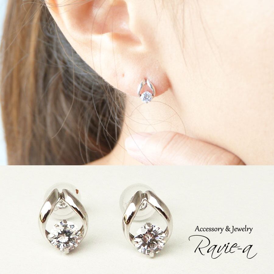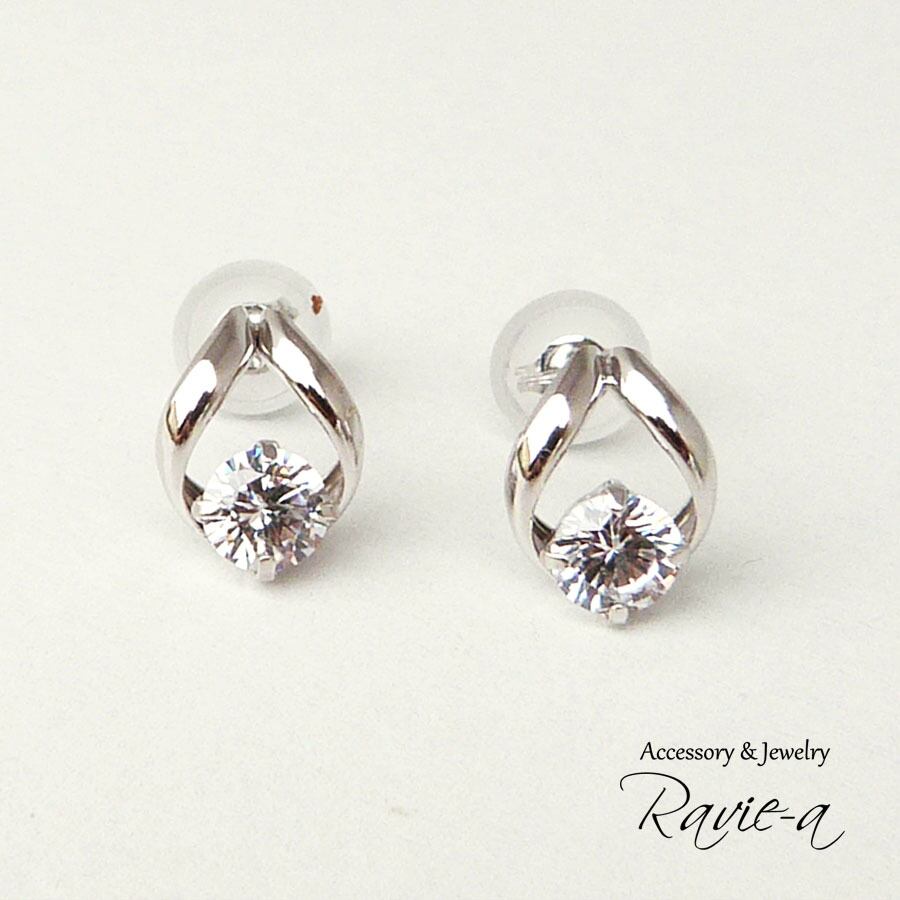 K10 ホワイトゴールド ドロップ ピアス スタッド キュービックジルコニア シンプル 1粒 大人