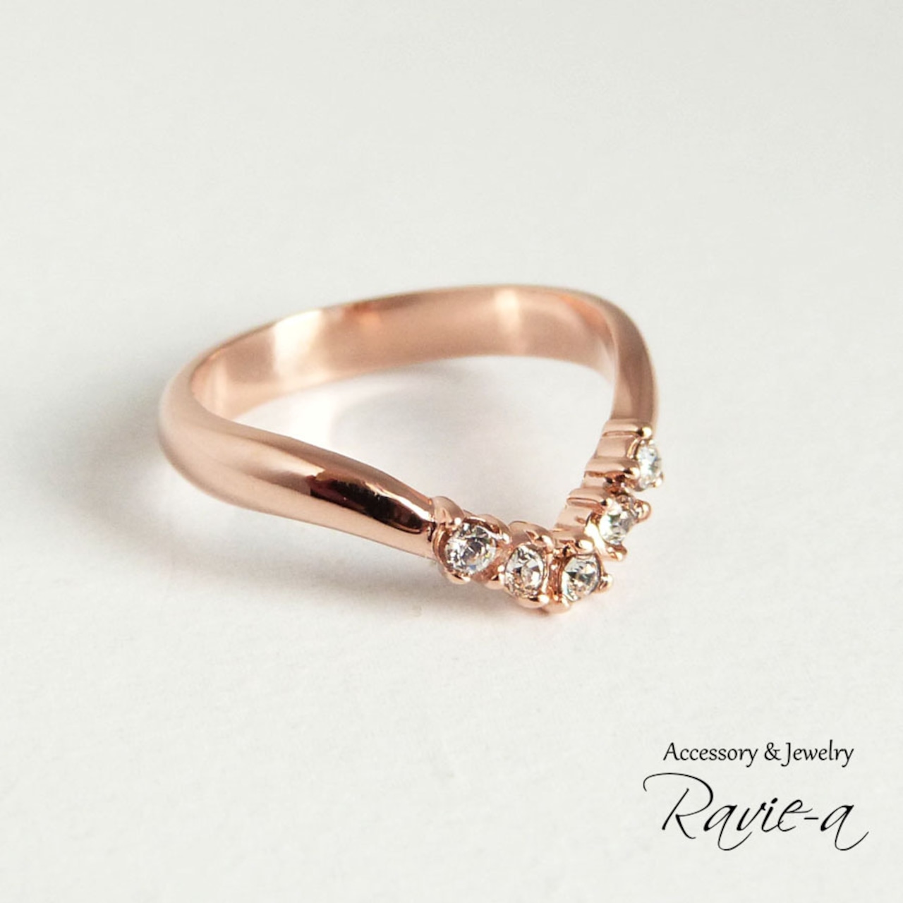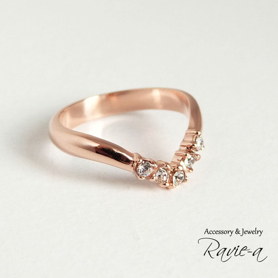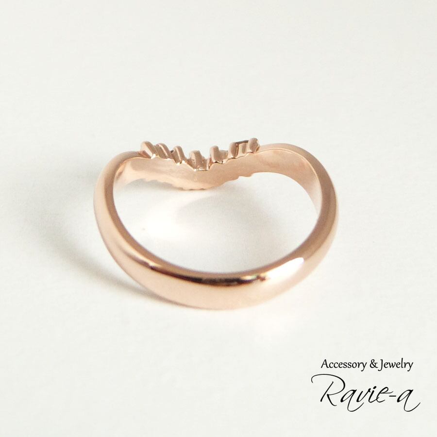 Vリング ピンクゴールド シルバー セミオーダー カスタマイズ 選べるクリスタルカラー 1~28号
