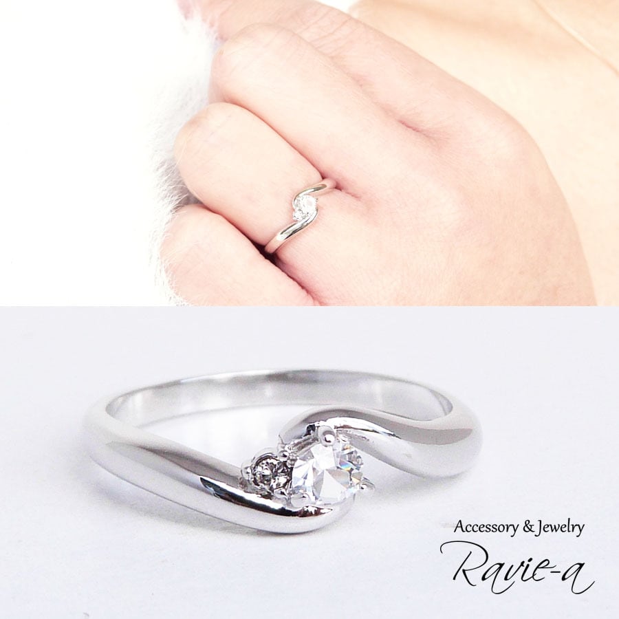 ウェーブデザイン リング 指輪 クリスタル 1~28号 無料カラー変更