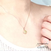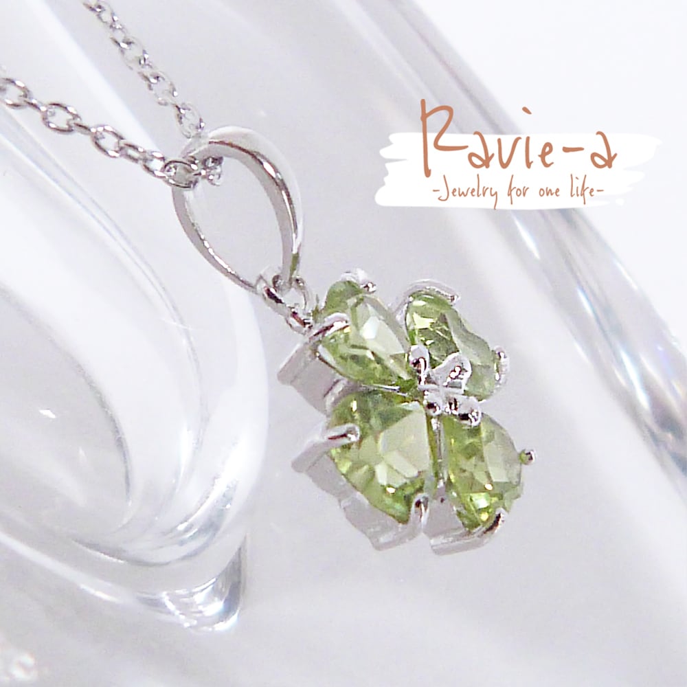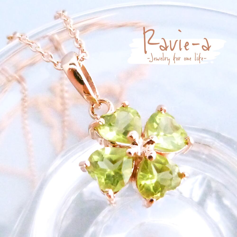 ハートのペリドット4石を四つ葉のクローバーに見立ててデザインしたネックレスでございます。