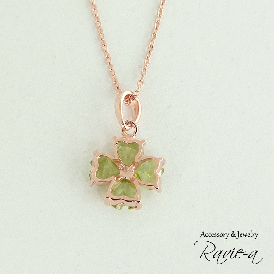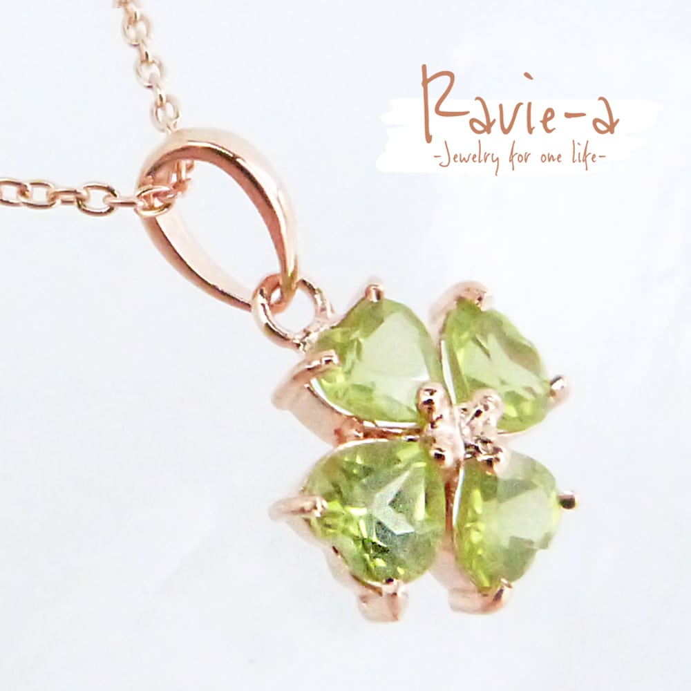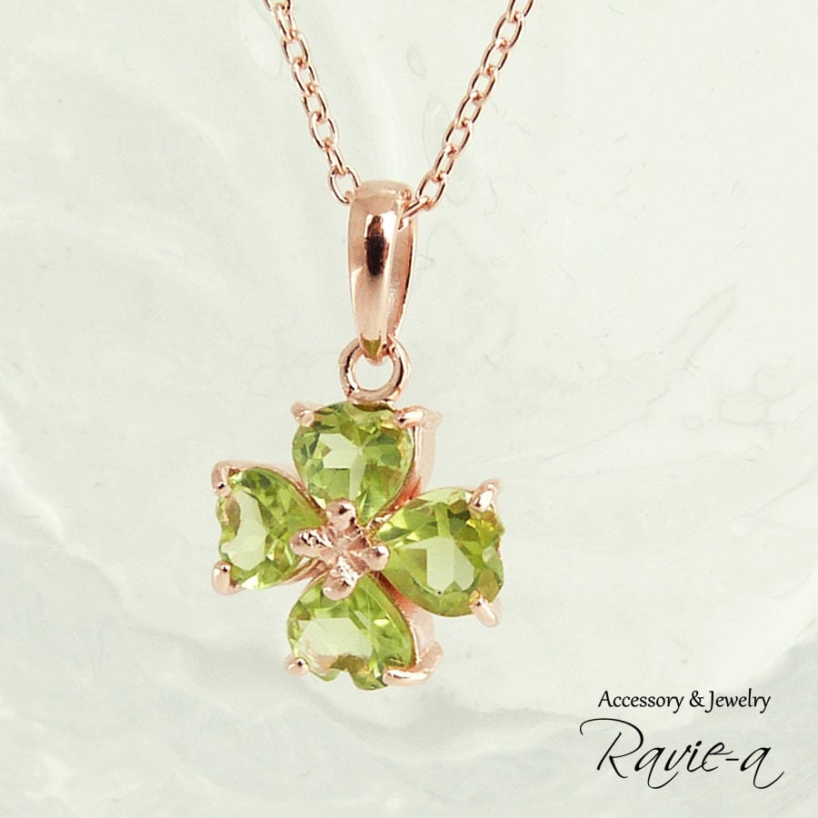 四つ葉のクローバー ネックレス シルバー925 ペリドット ピンクゴールド 天然石 ハート お守り 幸せ 誕生日プレゼント