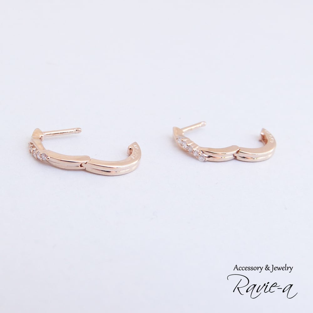 合計0.05ctのダイヤモンドを使用した大人のフープピアスでございます。