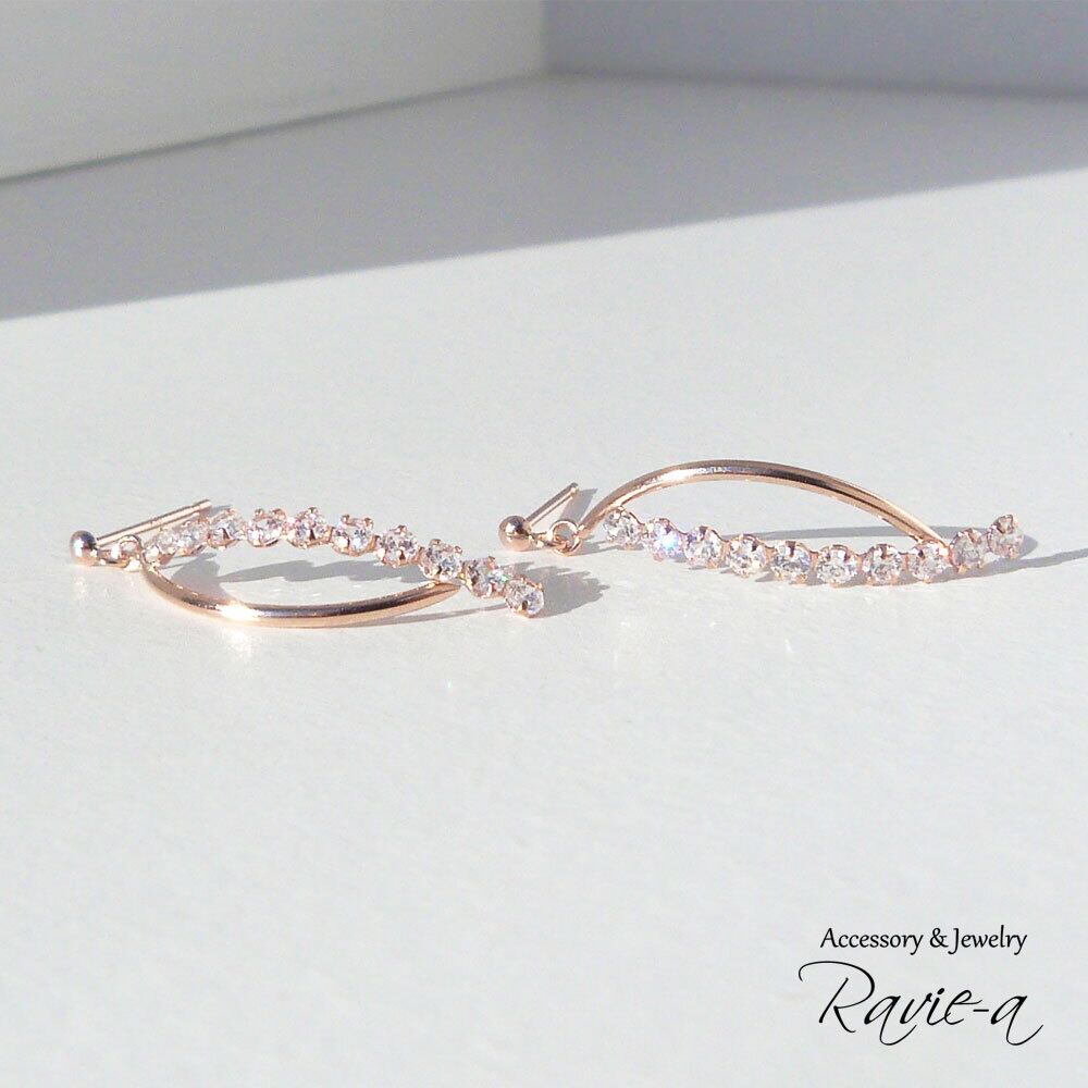 K10ピンクゴールド 曲線デザインピアス キュービックジルコニア10石