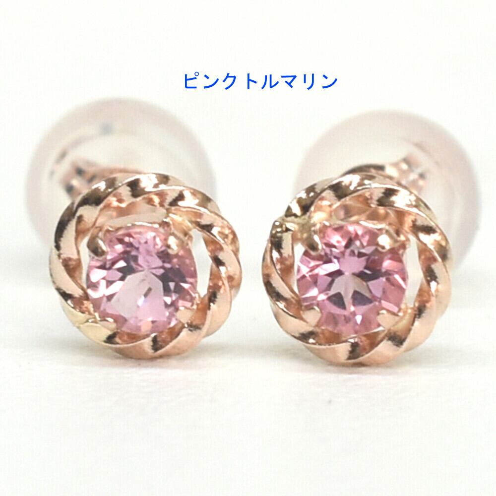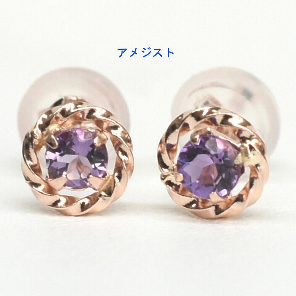 K10ピンクゴールド ロードライトガーネット 1粒ピアス 天然石 1月誕生石
