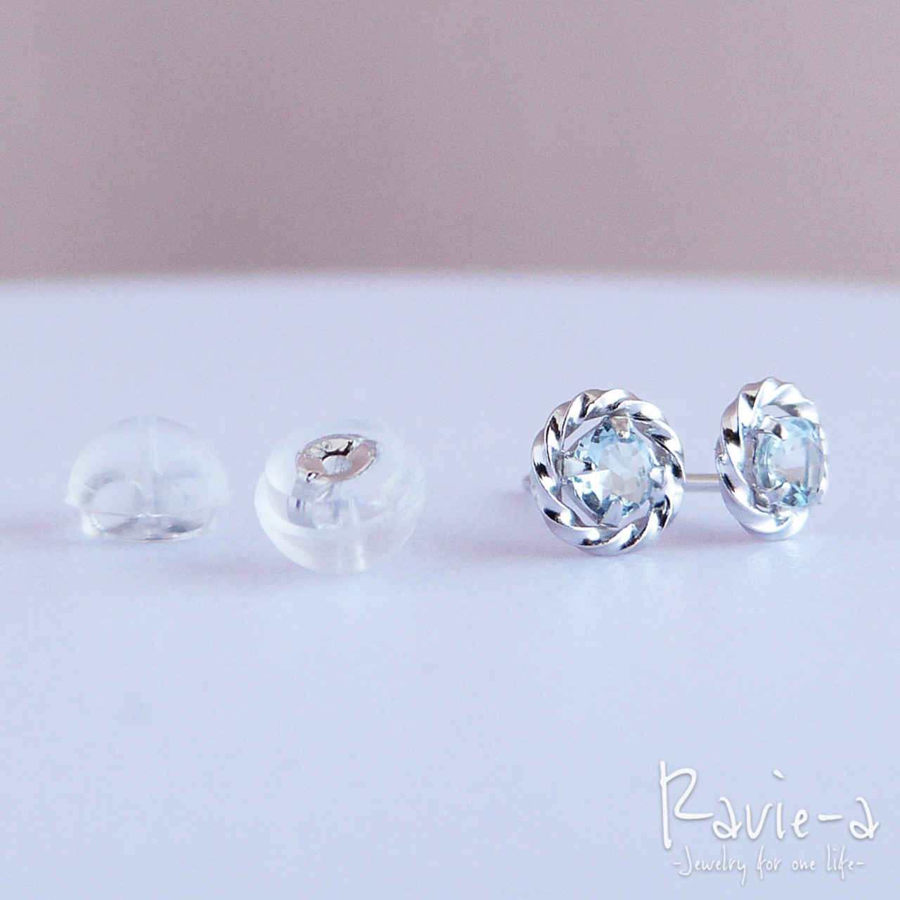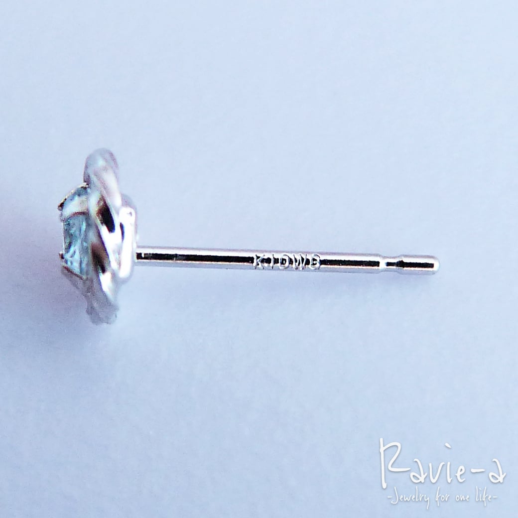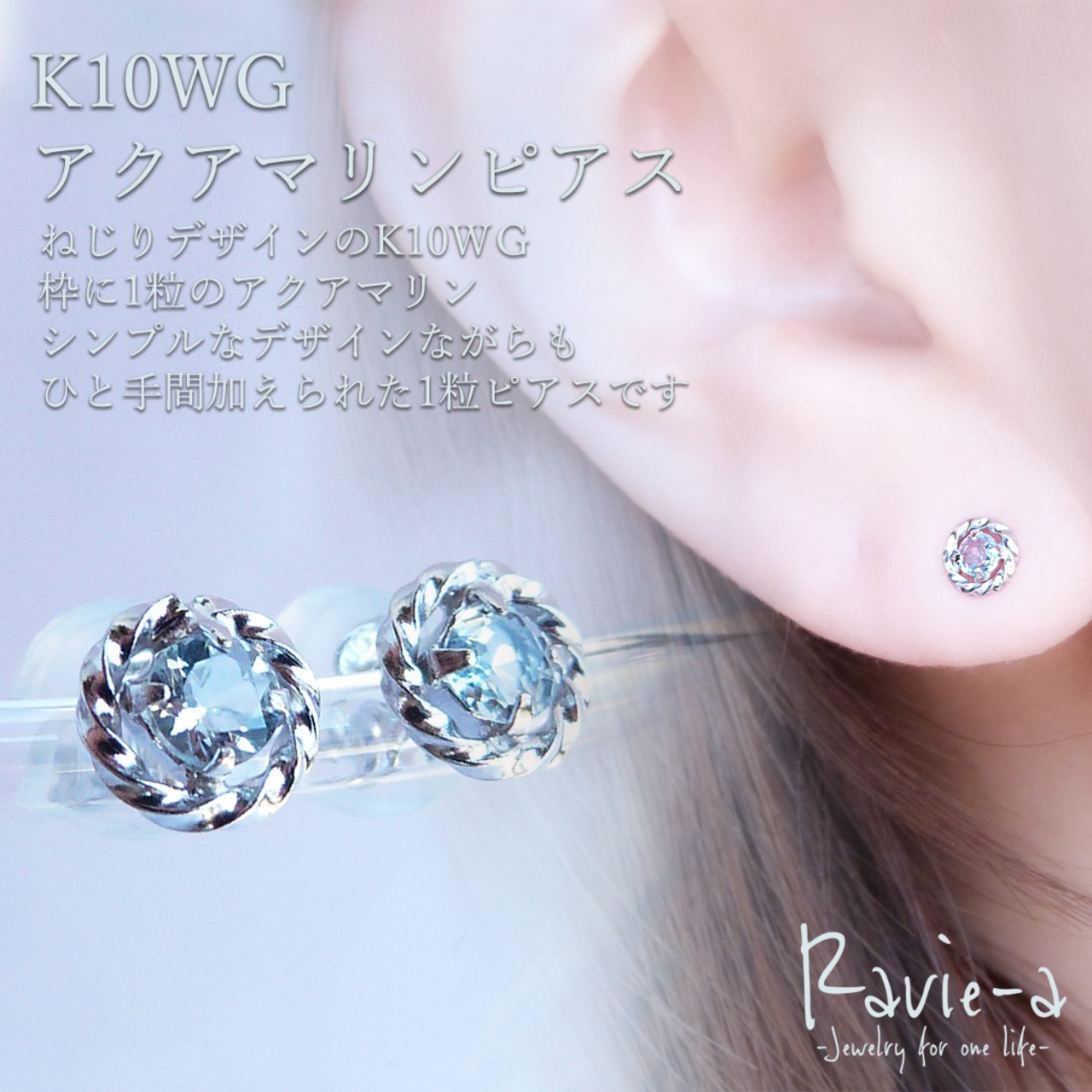K10ホワイトゴールド アクアマリン 1粒ピアス 天然石 3月誕生石