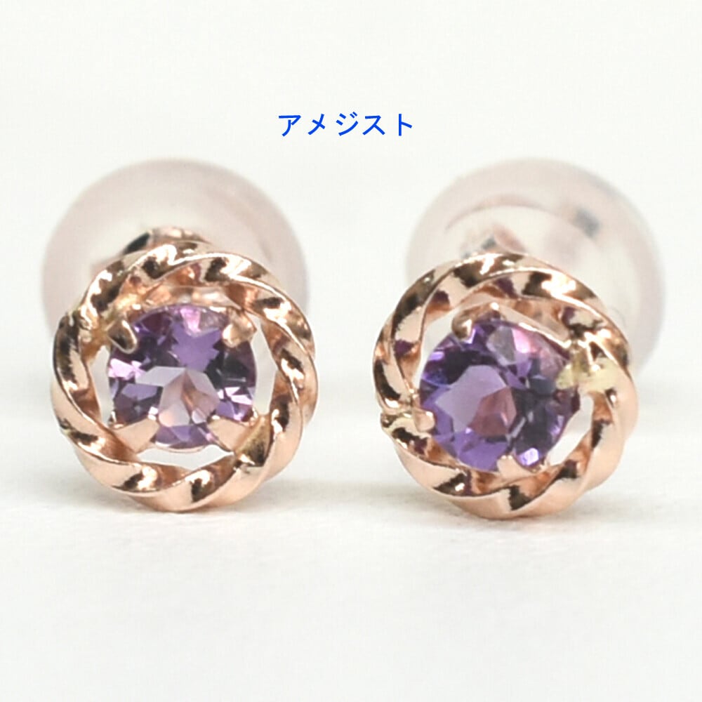 K10ピンクゴールド アメジスト 1粒ピアス 天然石 2月誕生石