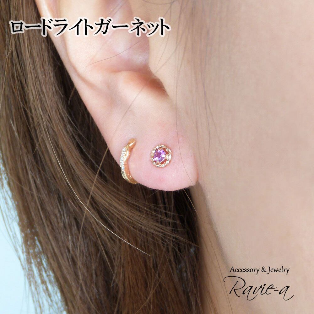 K10ピンクゴールド ピンクトルマリン 1粒ピアス 天然石 10月誕生石