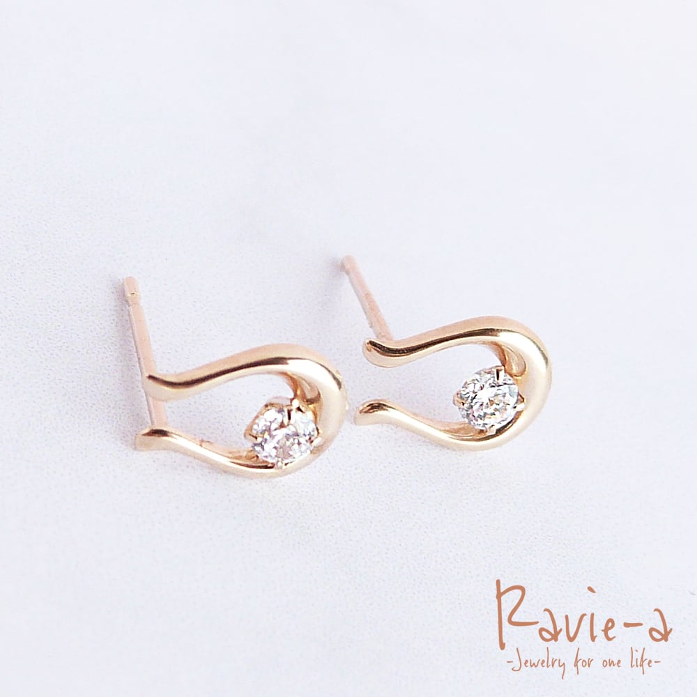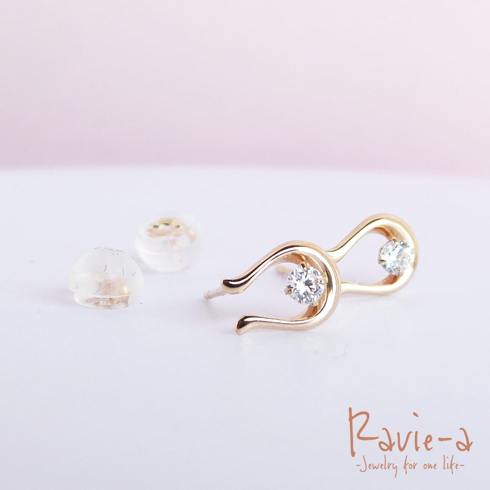 小さく華奢なホースシューに2.5mmのキュービックジルコニアが添えられた上品な雰囲気のこちらのピアスはオフィスや普段使いにぴったりです。