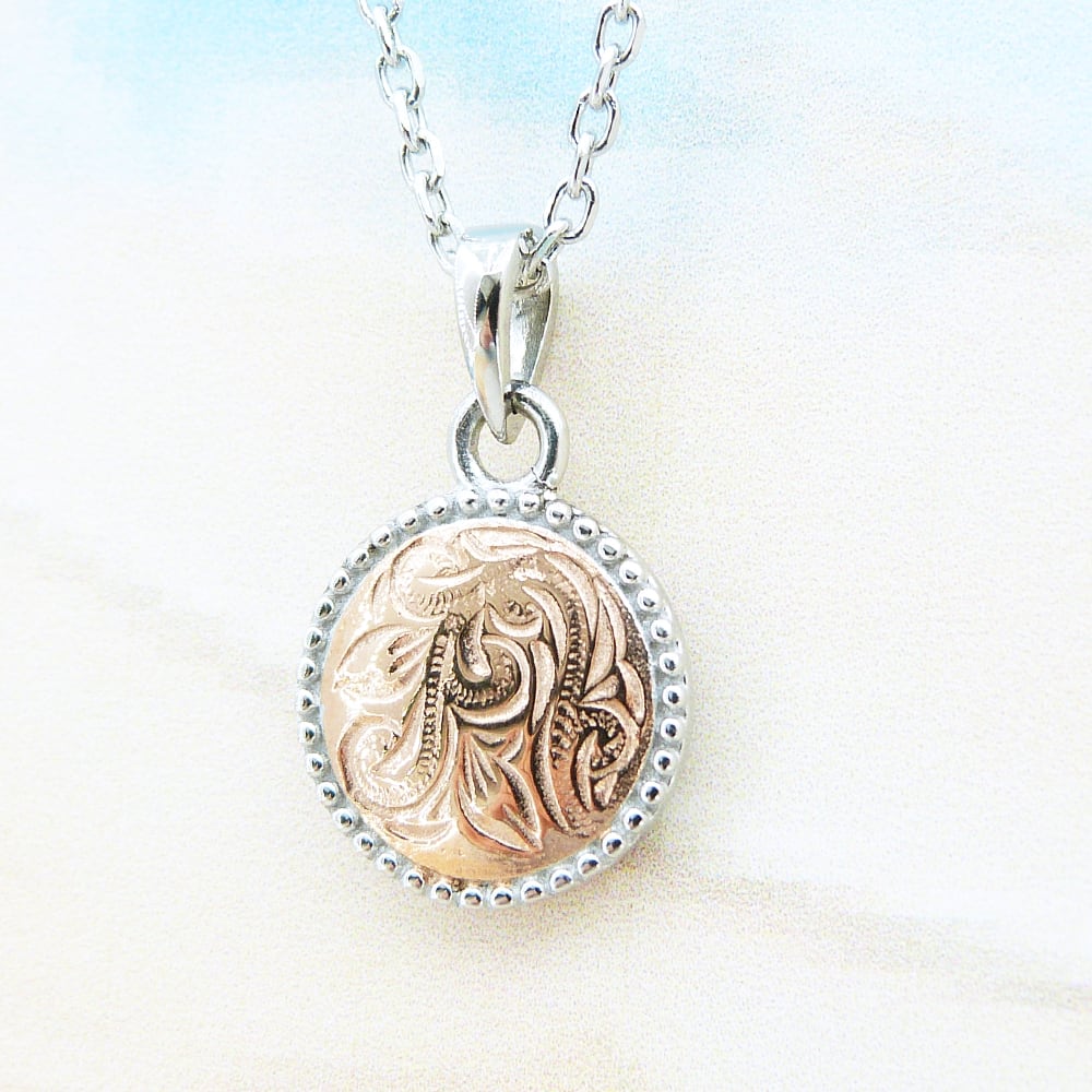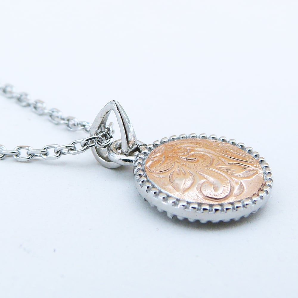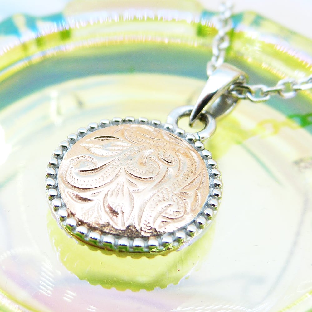 ころんとしたコイン型のネックレストップはミルデザインで輝きUP!