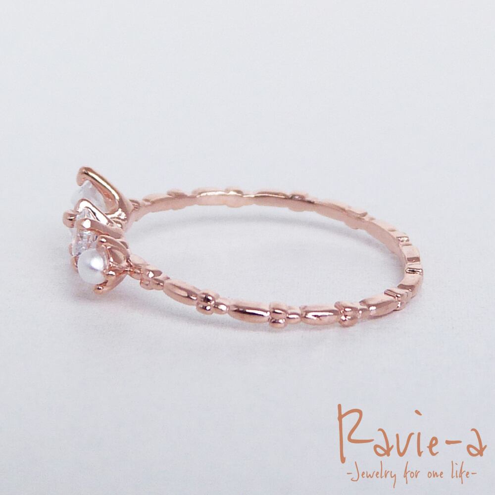 キュービックとプチパールのリング ピンクゴールド 華奢 11号