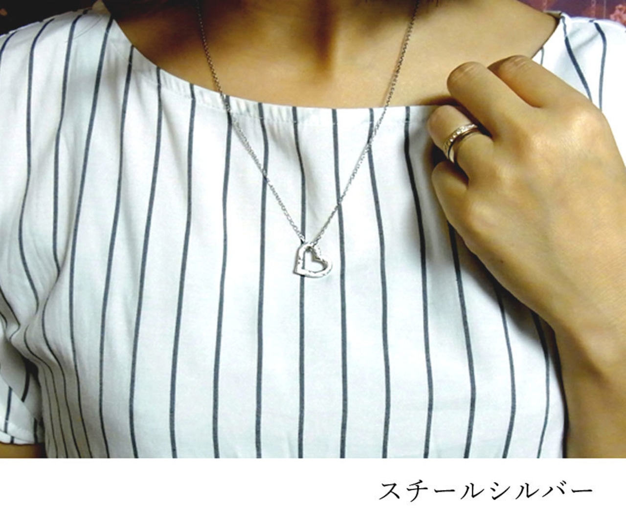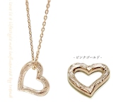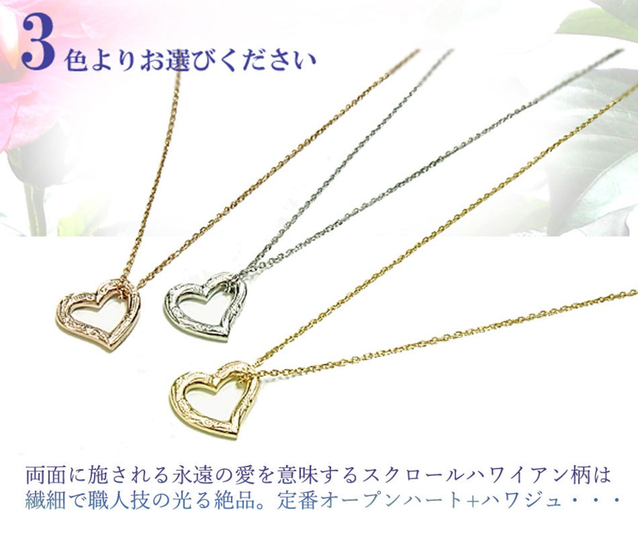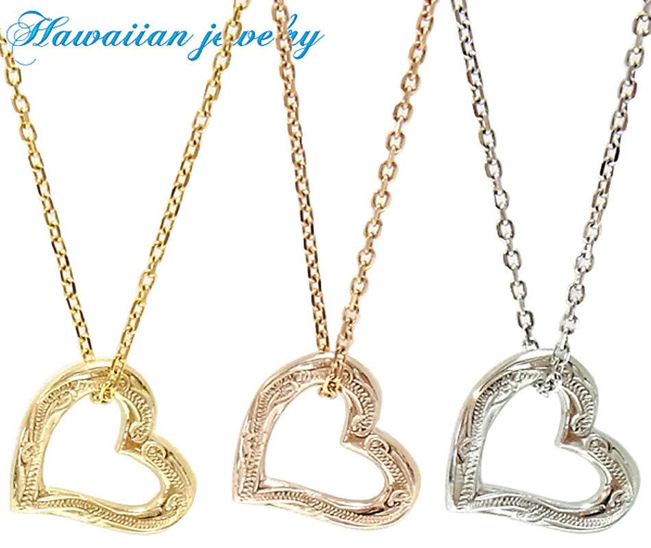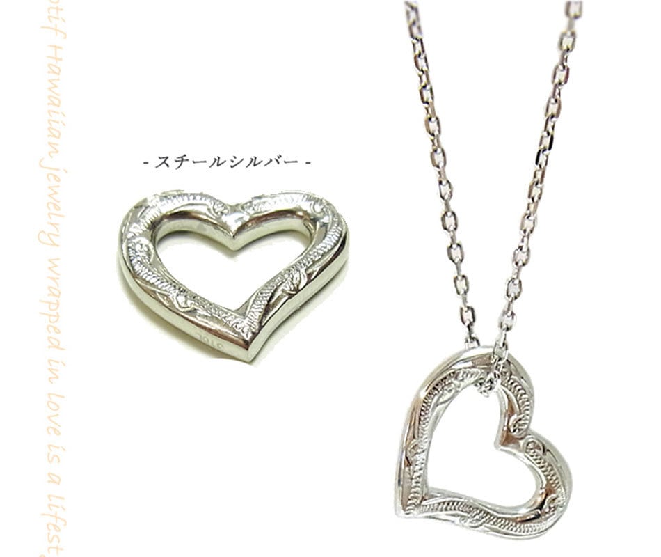 ハワイアンジュエリー ペンダントオープンハート ネックレス プルメリア スクロール ホヌ スチールシルバー/イエローゴールド/ピンクゴールド
